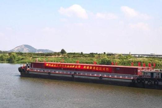 隨著諸暨市委常委金立耿一聲令下,兩艘滿載集裝箱的貨船緩緩從諸暨新亭埠碼頭駛出。至此,諸暨水路運輸邁入集裝箱運輸時代,實現轄區通江達海夢。